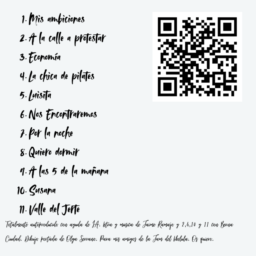 Música y letra mías, muchas con Berna Ciudad, la producción y masterización, por IA. Un pequeño homenaje a mis compañeros y amigos de la Jam, que han dado tanto. Portada de Olga Serrano. Os quiero. Un abrazo.